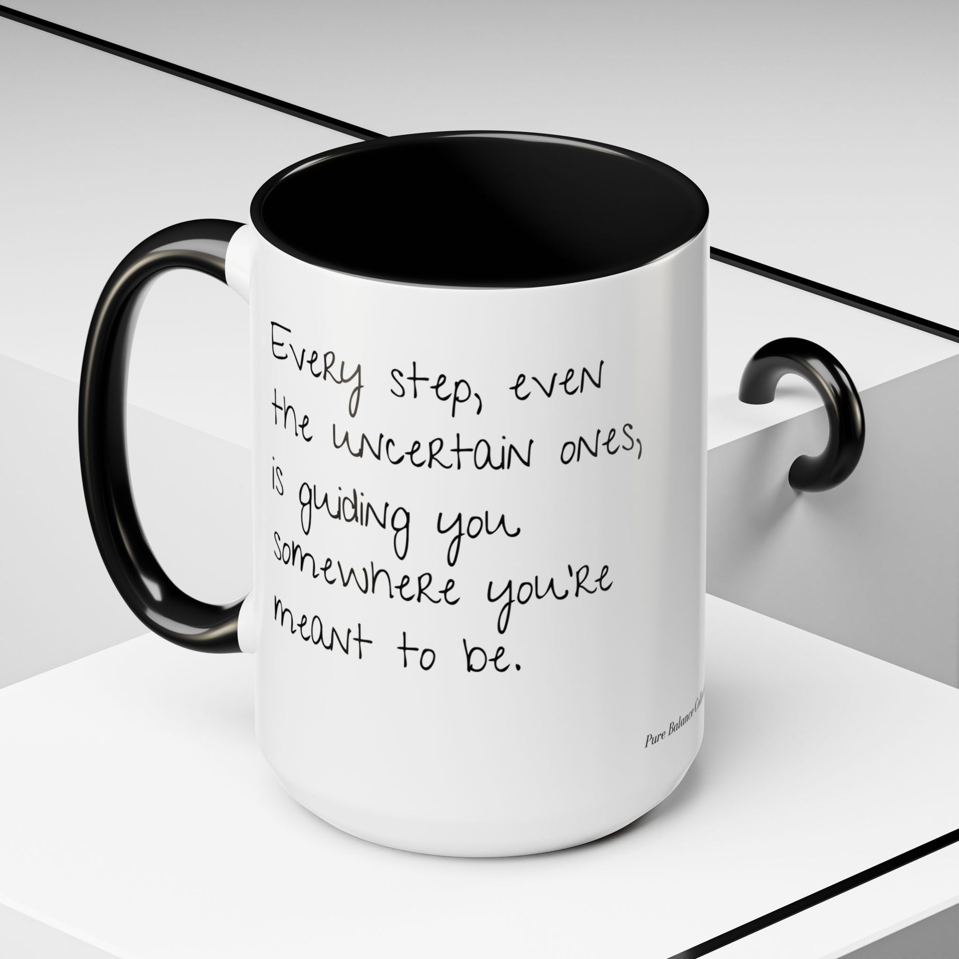 Start each morning with a reminder that the journey is just as meaningful as the destination. Our “Every Step” mug is more than a vessel for your favorite coffee or tea — it’s a daily affirmation. Featuring the quote, “Every step, even the uncertain ones, is guiding you somewhere you’re meant to be,” this mug was designed to ground you in patience, trust, and purpose.